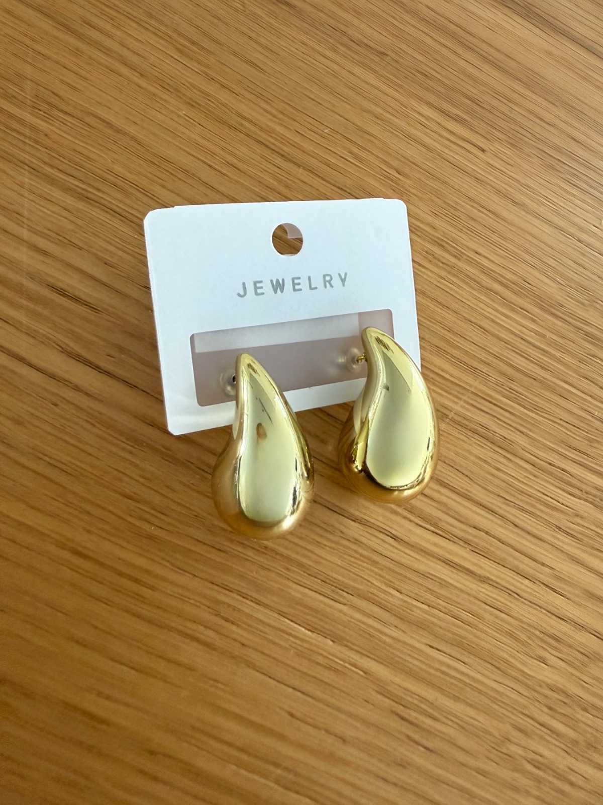 Χρυσά σκουλαρίκια με σχήμα σταγόνας και καθρέφτη φινίρισμα.
