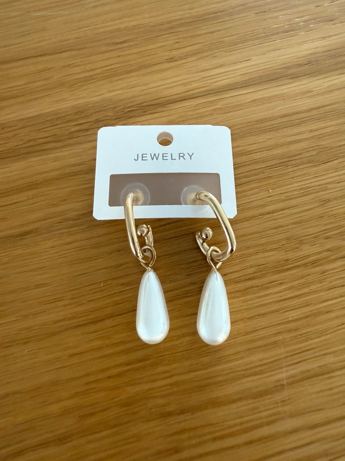 Χρυσοί κρίκοι με εκκρεμές δάκρυ από faux πέρλα.