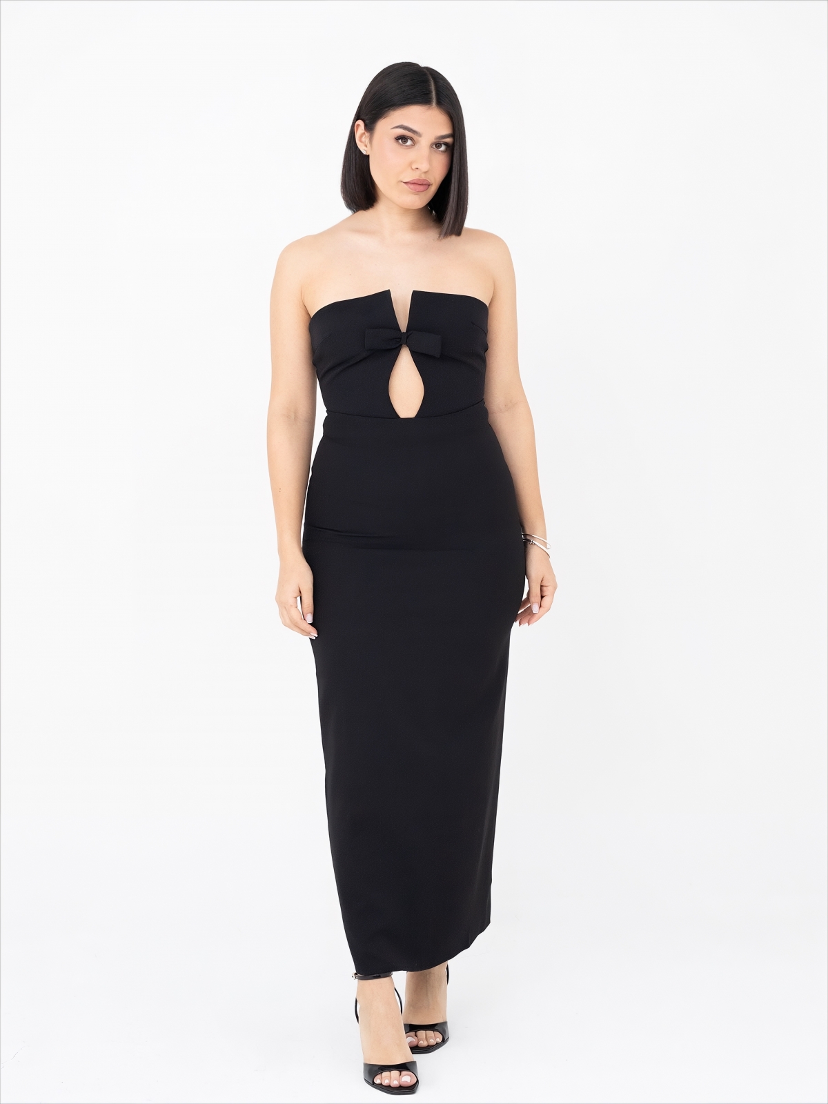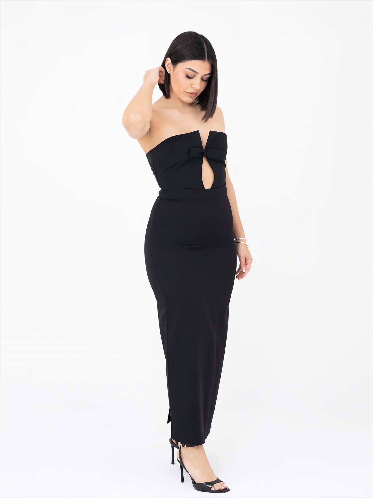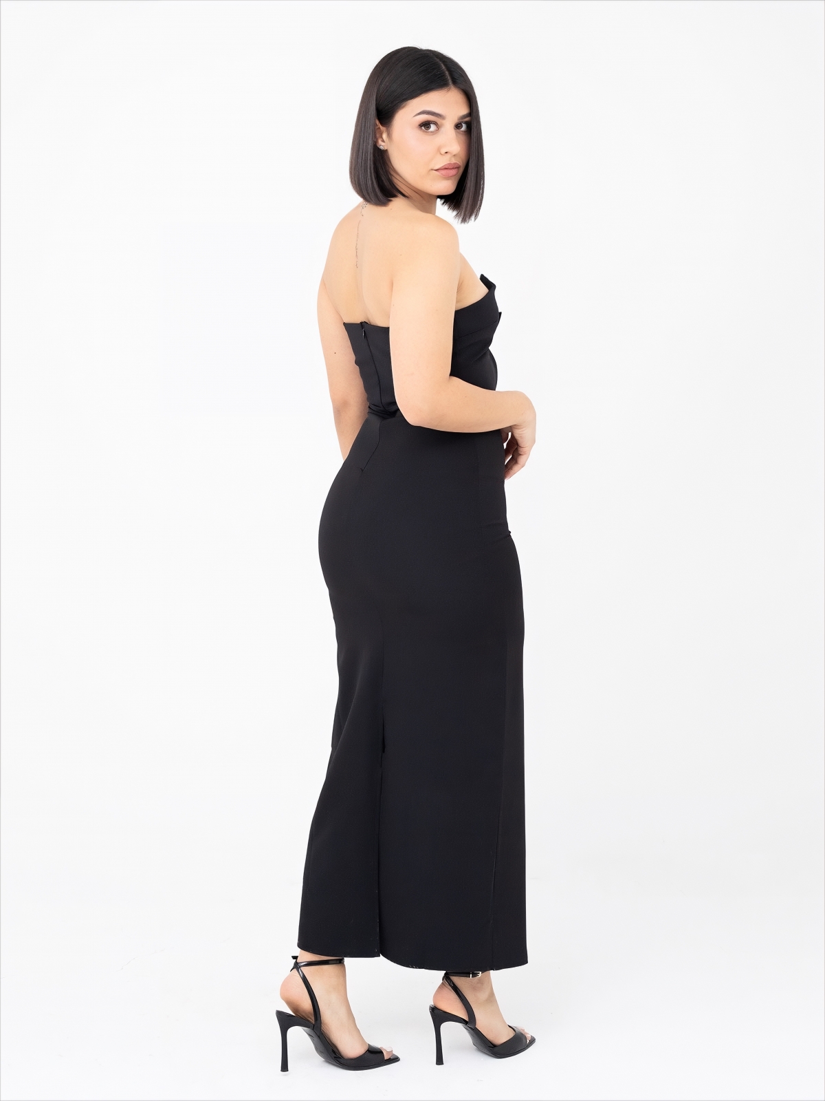 ΜΑΥΡΟ ΜΑΚΡΥ ΦΟΡΕΜΑ ΜΕ ΦΙΟΓΚΟ ΜΠΡΟΣΤΑ
