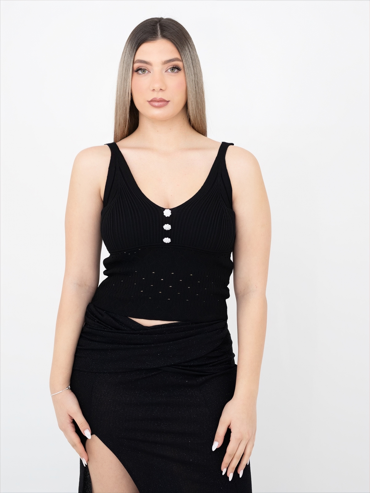 ΑΜΑΝΙΚΗ ΠΛΕΚΤΗ ΜΠΛΟΥΖΑ ΜΕ ΛΕΠΤΟΜΕΡΕΙΕΣ - ΜΑΥΡΗ