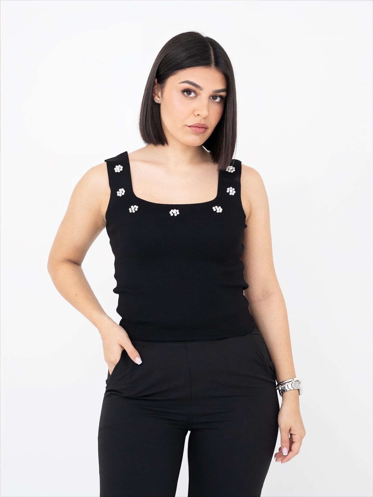ΜΠΛΟΥΖΑ ΑΜΑΝΙΚΗ ΜΕ ΠΕΡΛΕΣ ΛΟΥΛΟΥΔΙΑ - ΜΑΥΡΗ