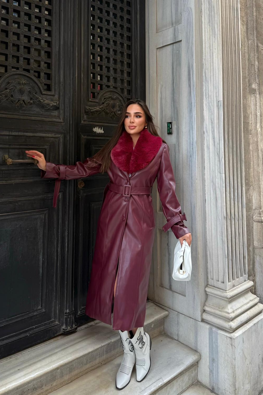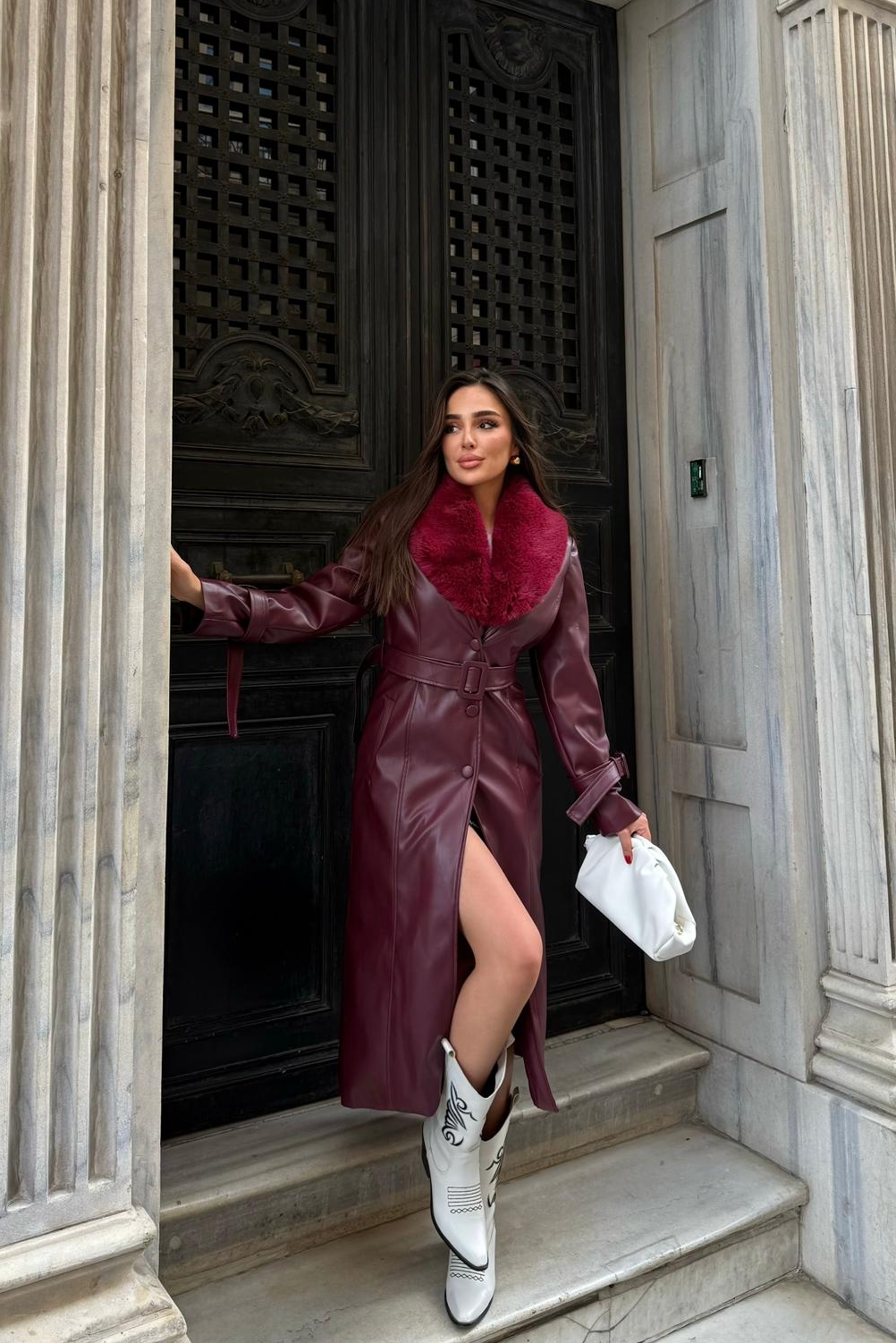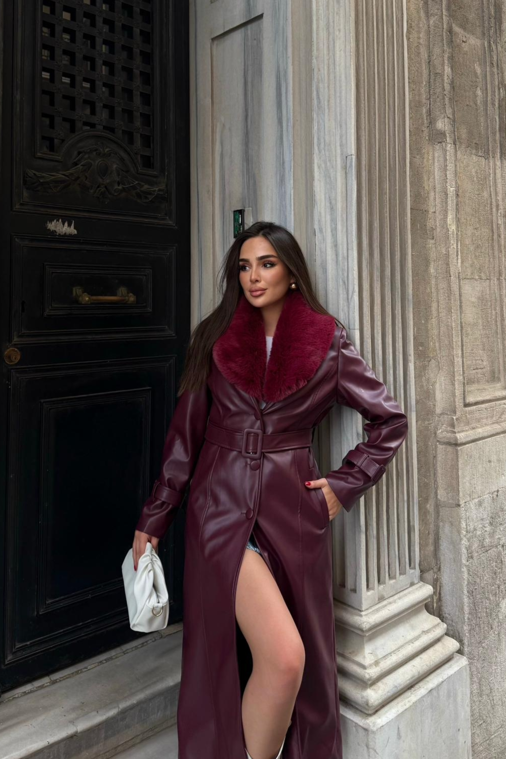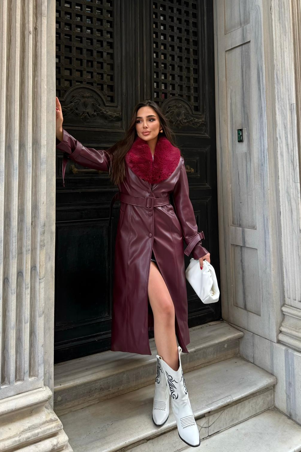 Μπορντό καμπαρντίνα με γουνα στον λαιμό