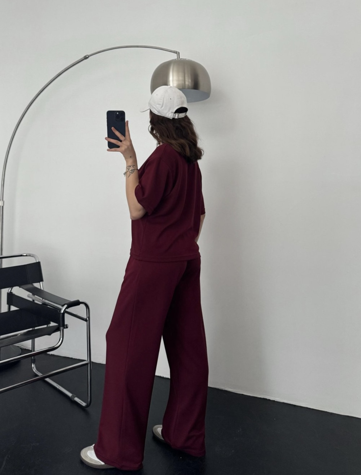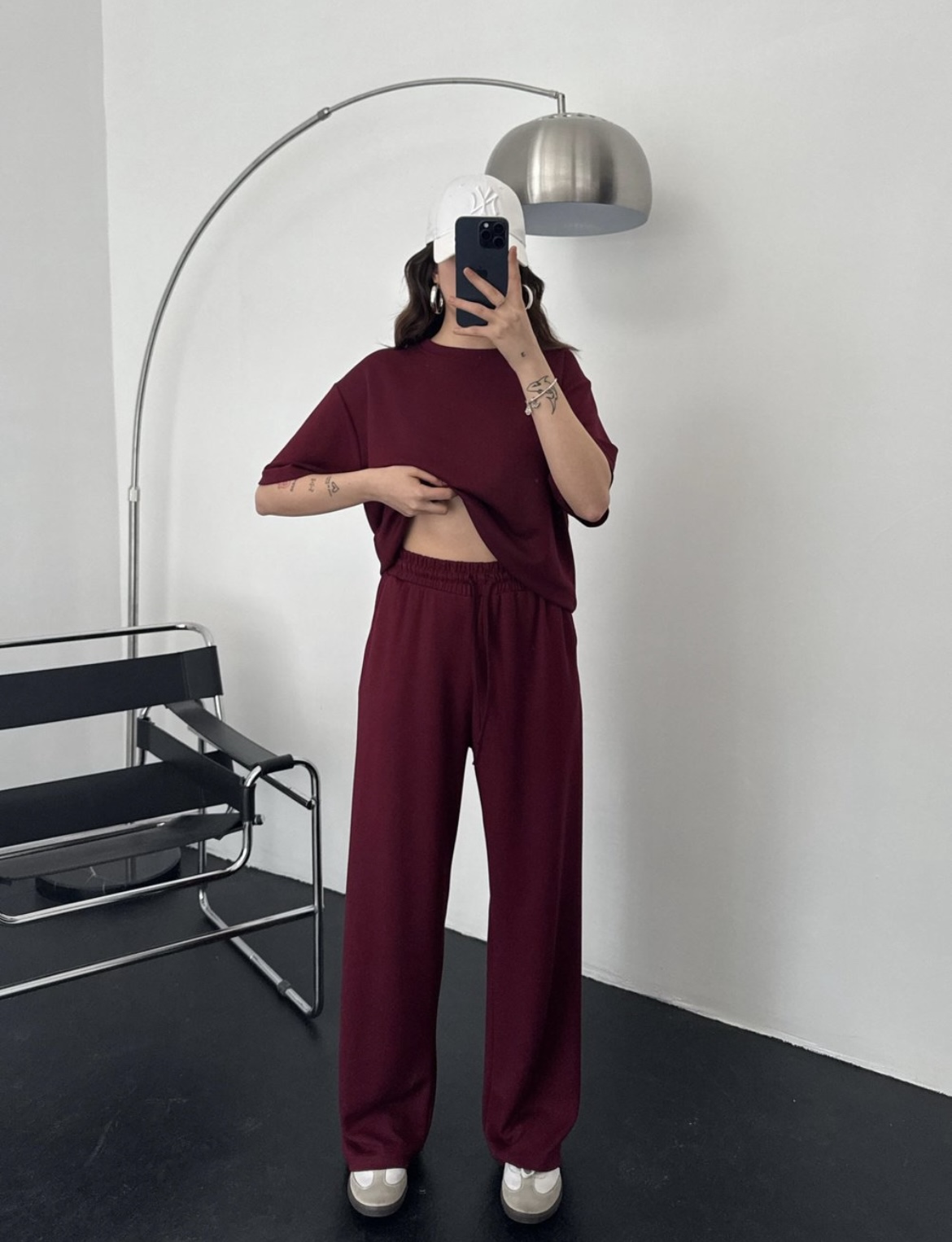 Αποτελείται από oversized μπλούζα και παντελόνι με φαρδιά γραμμή, ιδανικό για χαλαρές στιγμές ή για effortless street looks.